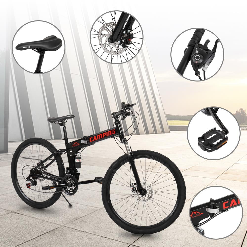 Campingsurvivals Mountain Bike Adult Folding 21 Speed Steel Bicycle With Riding Bag Black 26in Wheel Walmart Com
